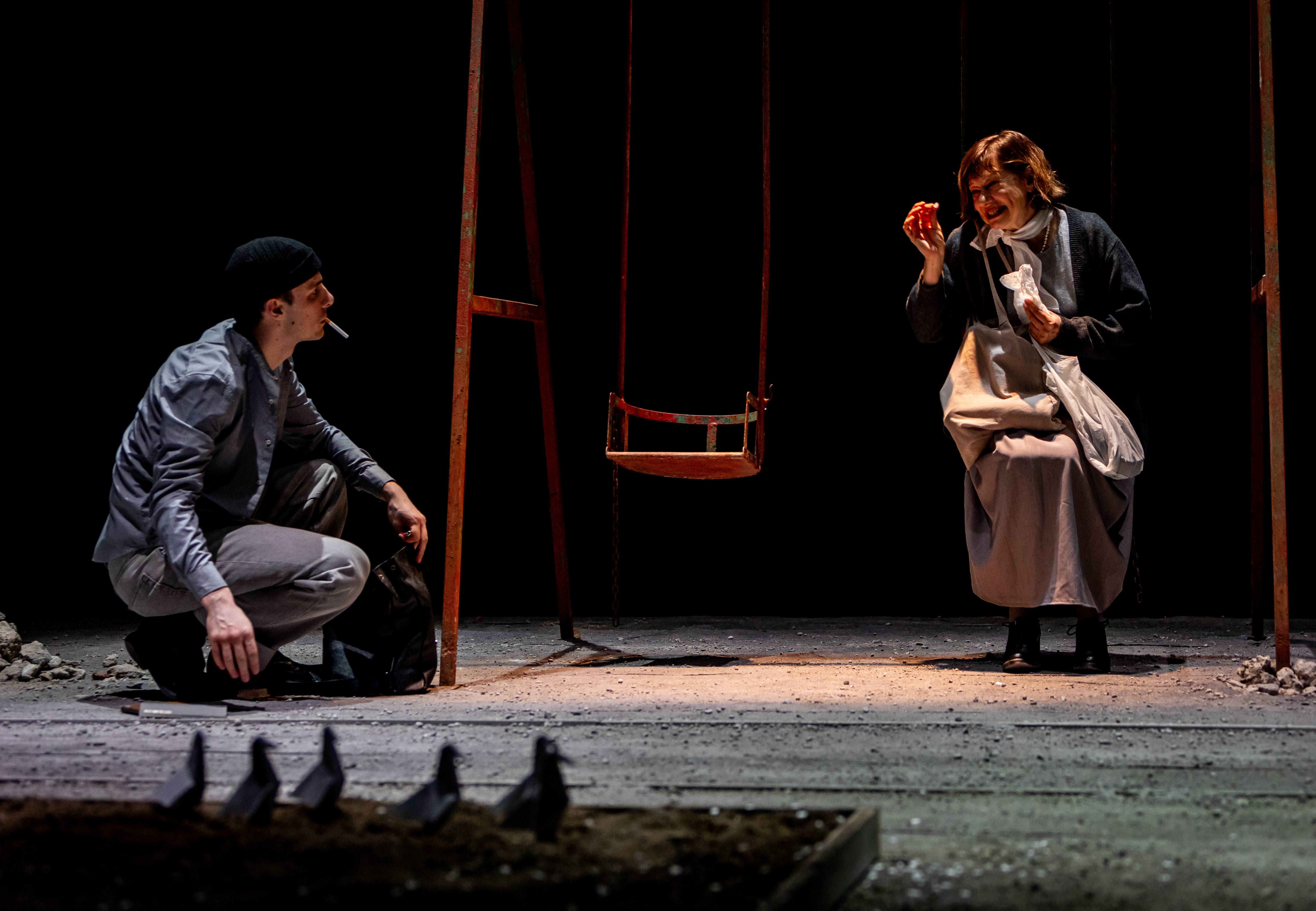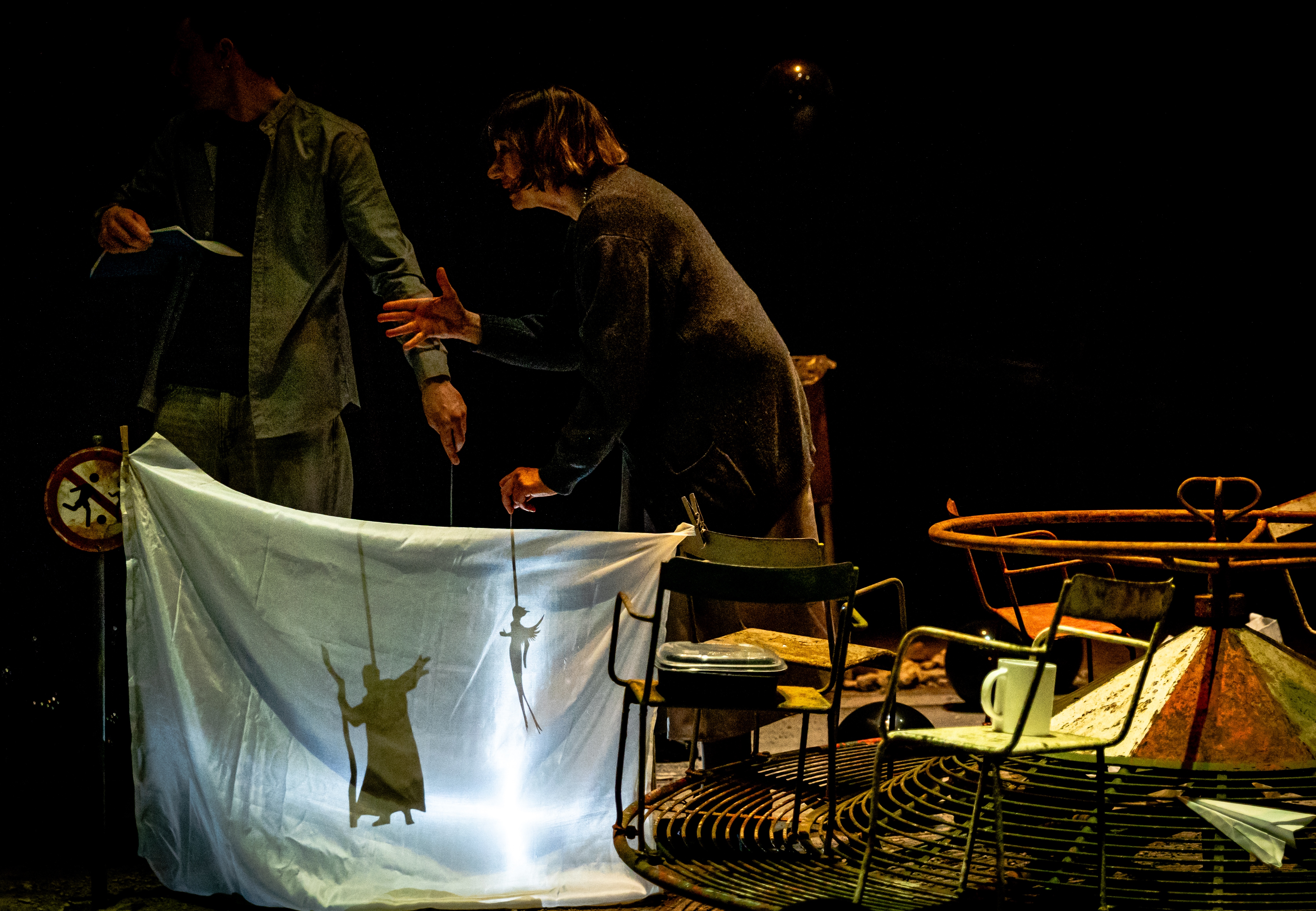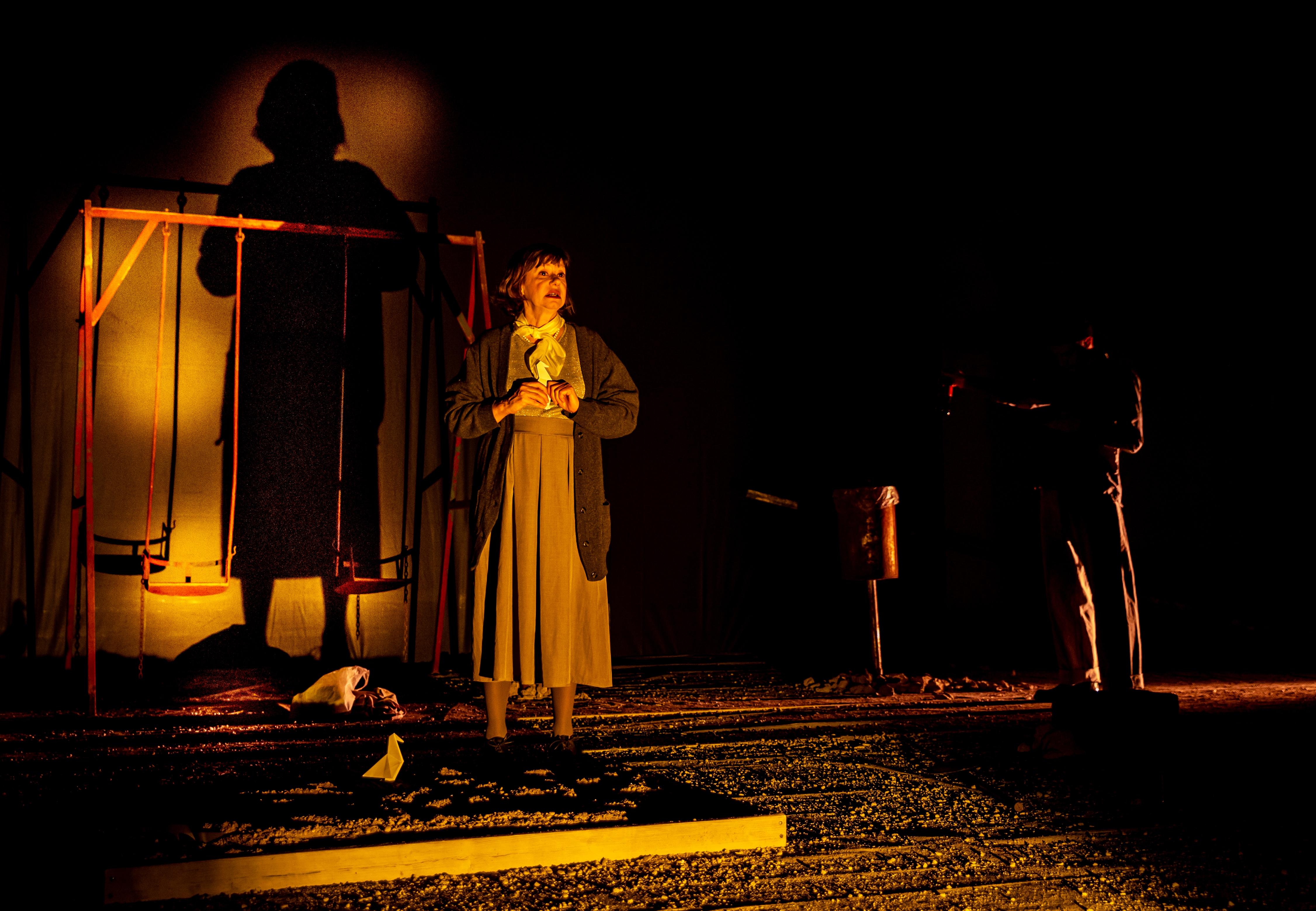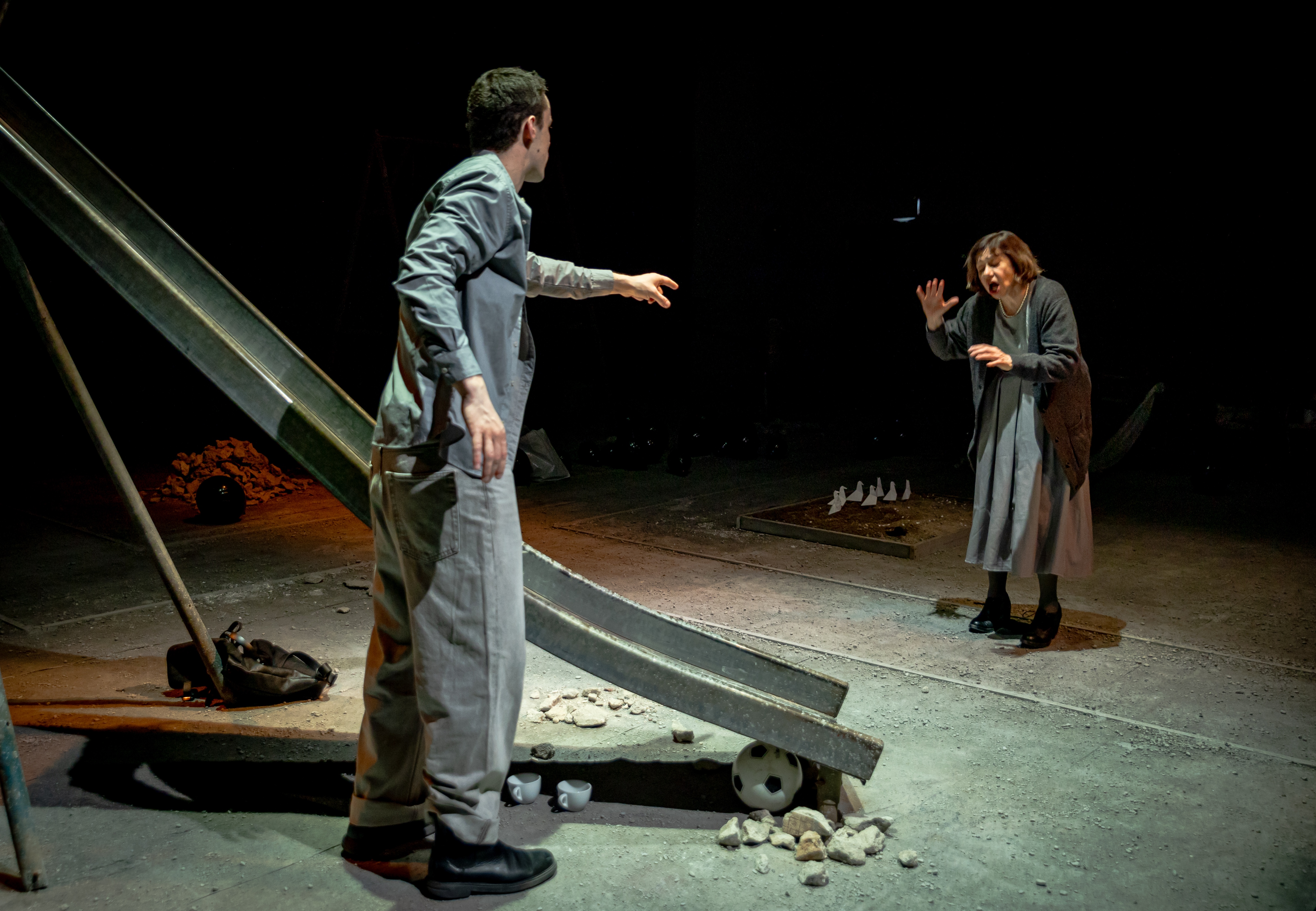 Uno spettacolo interessante perché mette in campo la creatività delle nuove generazioni: Francesco Toscani, l’autore classe 1996, e Andrea Piazza, il 29enne e bravo regista. Lo spazio del teatro diventa uno spiazzo di cemento e ghiaia, qua e là giochi per bambini in disuso, come una di quelle aree abbandonate delle grandi città di oggi. C’è molta solitudine. Efficace la regia anche nel governo della recitazione dei due attori, Monica Bonomi e Fabrizio Calfapietra. Da applauso.