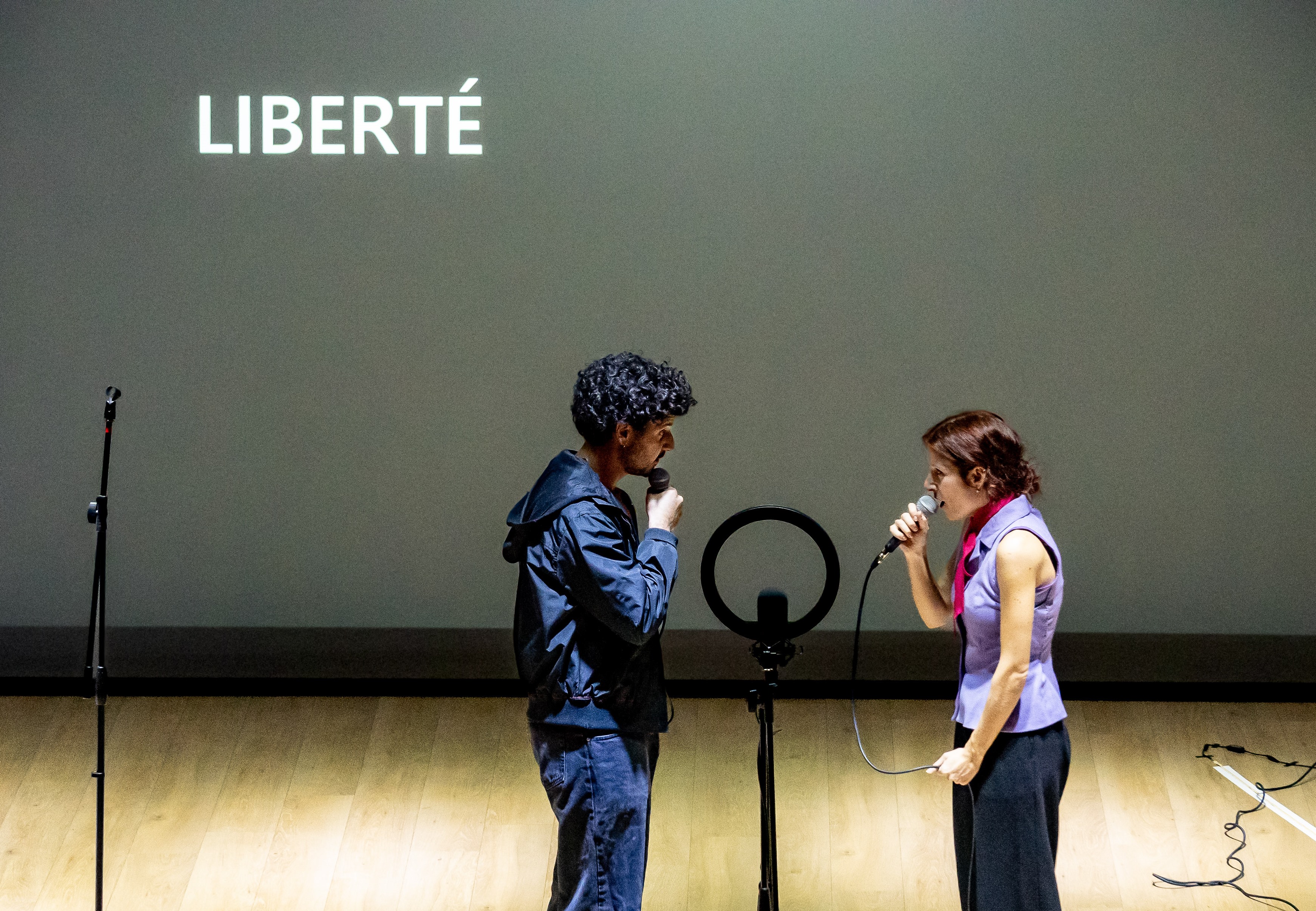Un testo che prende la forma sincopata, spezzata e ipercontemporanea di un concerto elettroopop, rivendicando l’enfasi antica e attualissima a un tempo della Dichiarazione dei diritti della donna e della cittadina. La regia originale e asciutta di Andrea Piazza sottolinea lo stretto legame tra due momenti storici solo apparentemente distanti, attraverso gli strumenti della contemporaneità in dialogo con la storia