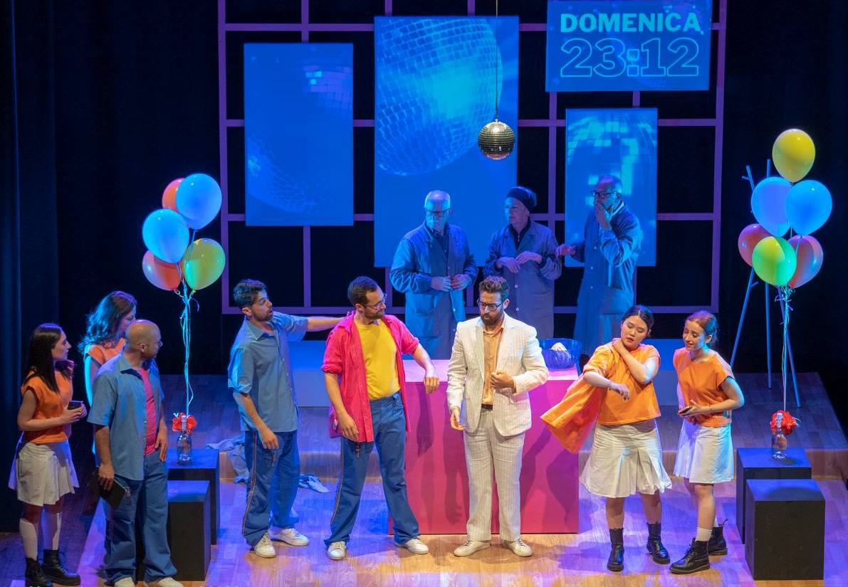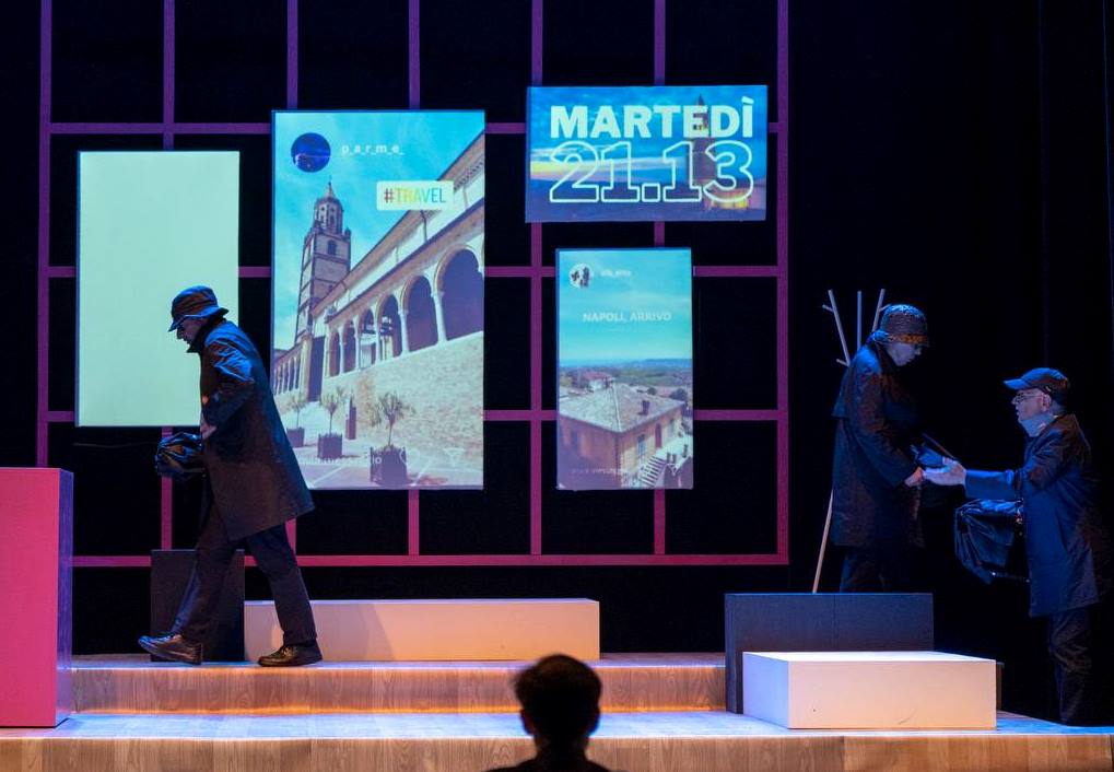 Eccoci allora in un mondo di oggi dai colori brillanti: i protagonisti rossiniani sono ragazzi e ragazze, adolescenti impulsivi alle prese con la scoperta dei propri sentimenti, con mille sogni e desideri che però non osano mostrare agli altri, per paura di una delusione, di un rifiuto. Ci muoviamo tra le stanze di un ostello dove i tre viaggiatori riparano quando durante il loro viaggio zaino in spalla scoppia un temporale; ci spostiamo tra i corridoi e le aule di un college dove i protagonisti si innamorano, si nascondono, si punzecchiano, si inseguono. Ad accompagnarci, come nella realtà di ogni giorno, loro, gli schermi che ci tengono in contatto e ci collegano costantemente.