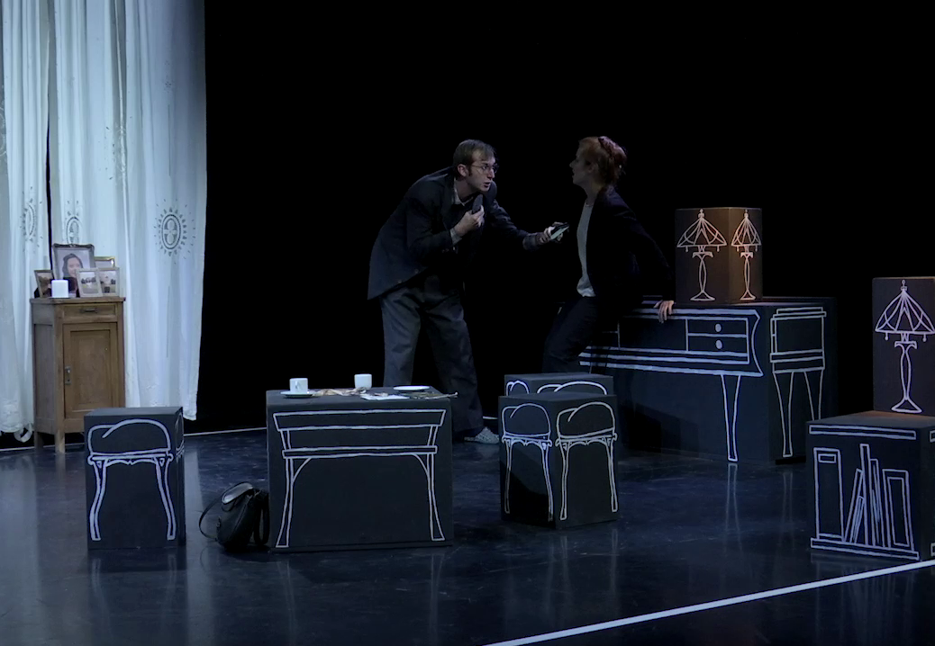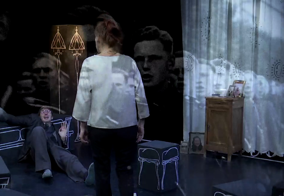 Profili incerti risucchia lo spettatore nella mente dell’anziano protagonista: le nebbie invernali brianzole del testo si fanno paesaggio dell’anima e sul palco prende corpo una fitta trama di sentimenti a lungo soffocati. Il pubblico non solo assiste all’incontro impossibile tra i due personaggi, ma sperimenta in prima persona la realtà liquida nella quale vive Nicola, attraverso una pluralità di linguaggi multimediali che contamina paesaggi sonori, video d’archivio della Seconda Guerra Mondiale, disegni animati e fotomontaggi.